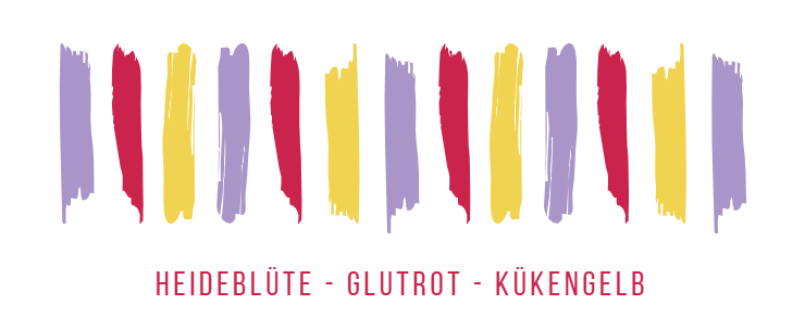Die Monatsfarben September sind Heideblüte, Glutrot und Kükengelb.