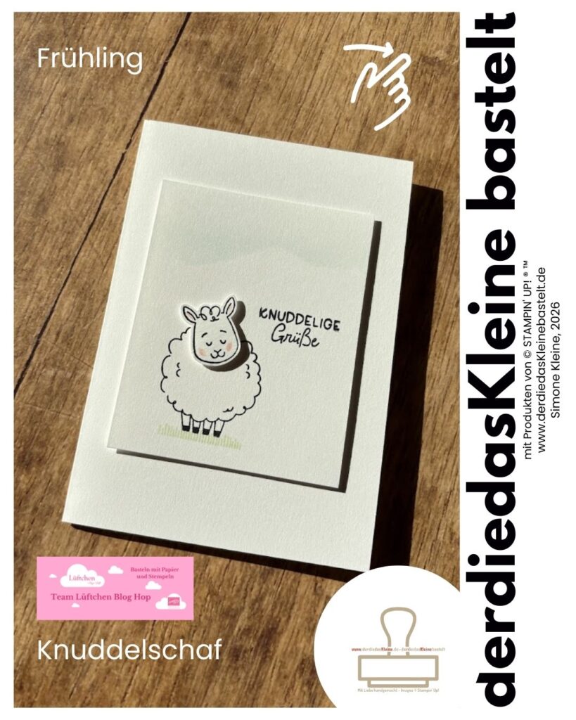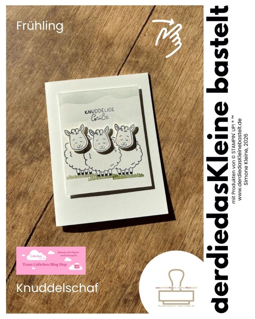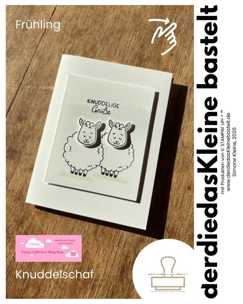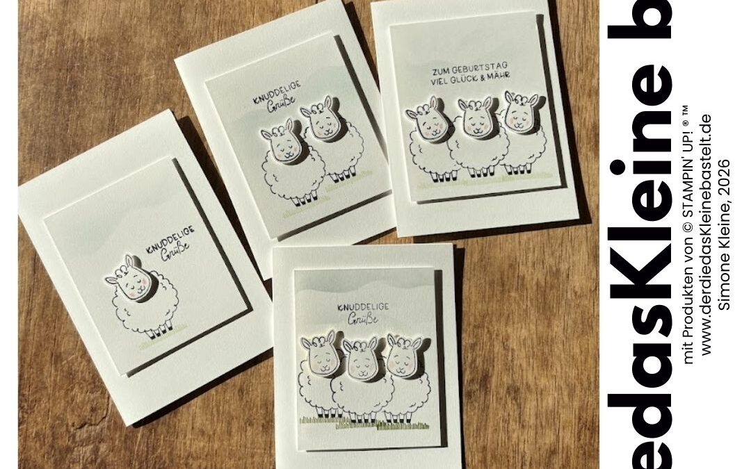 Für mich ist der Frühling von der Lämmerzeit geprägt. Ich wäre gern mal dabei. Das Produktpaket „Knuddelschaf“ mit der Handstanze ist perfekt um Schafe zu stempeln.
